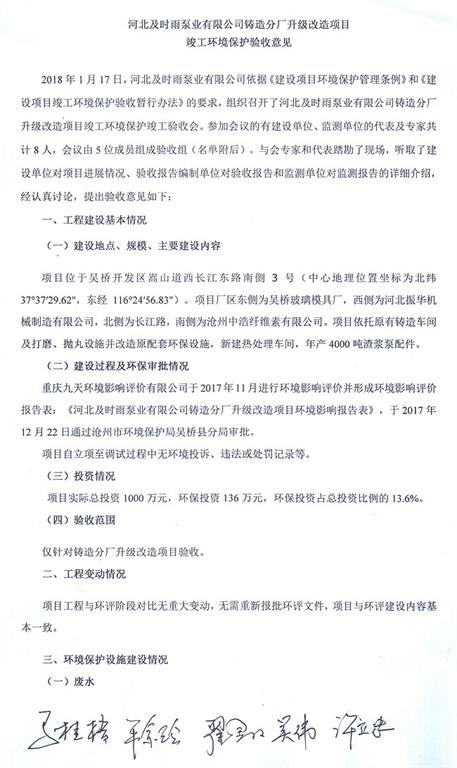 河北及時(shí)雨泵業(yè)有限公司鑄造分廠升級改造項(xiàng)目竣工環(huán)境保護(hù)驗(yàn)收意見公示-河北及時(shí)雨泵業(yè)有限公司